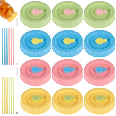 1/4Pcs Drinking Food Storage Cute Mason Jar Lids Canning Lids Jar Caps With Straw Hole