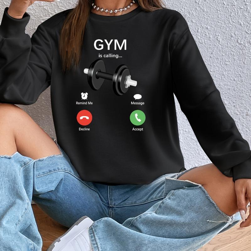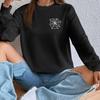 Women's Printed Crew Neck Hoodie, Fleece-Lined Winter Layering