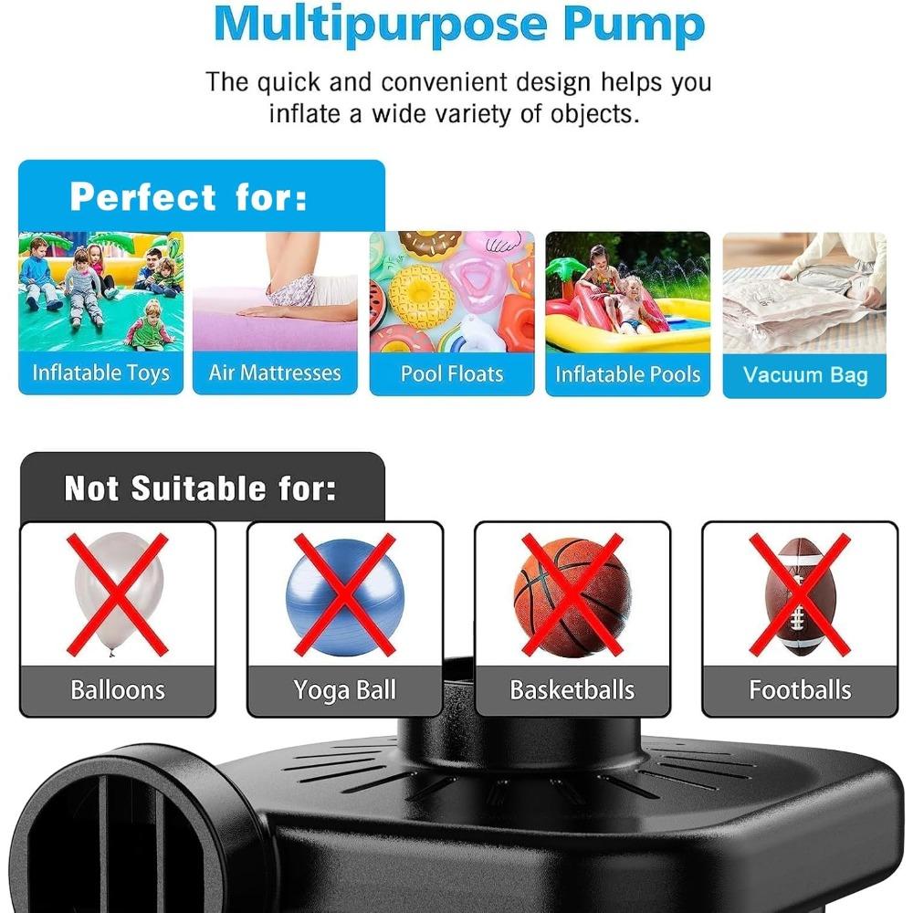 Electric Air Pump for Inflatables,Portable Quick-Fill Air Pump with 3 Nozzles,110-120V, Inflator & Deflator Pumps for Outdoor