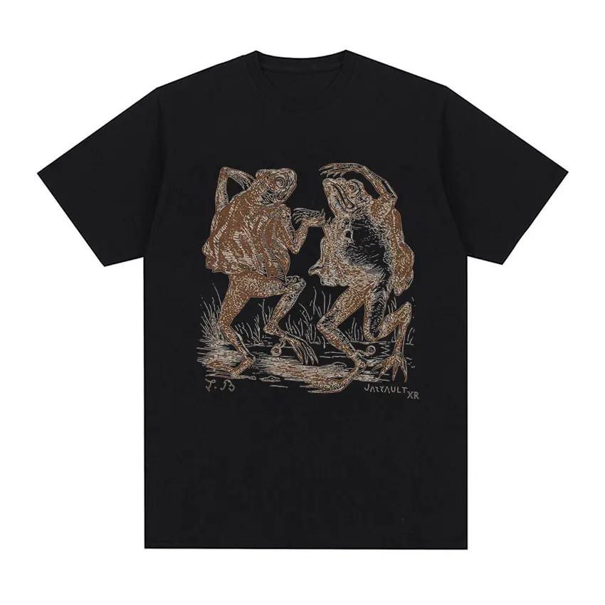 Men's fun dancing toad pattern printed 00% pure cotton short-sleeved T-shirt retro street clothing