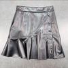 Kadın Sonbahar ve Kış Yeni Moda Çok Yönlü Deri Siyah Kulaklar Sıcak Kız Kısa Etek Düzensiz Deri Etek
