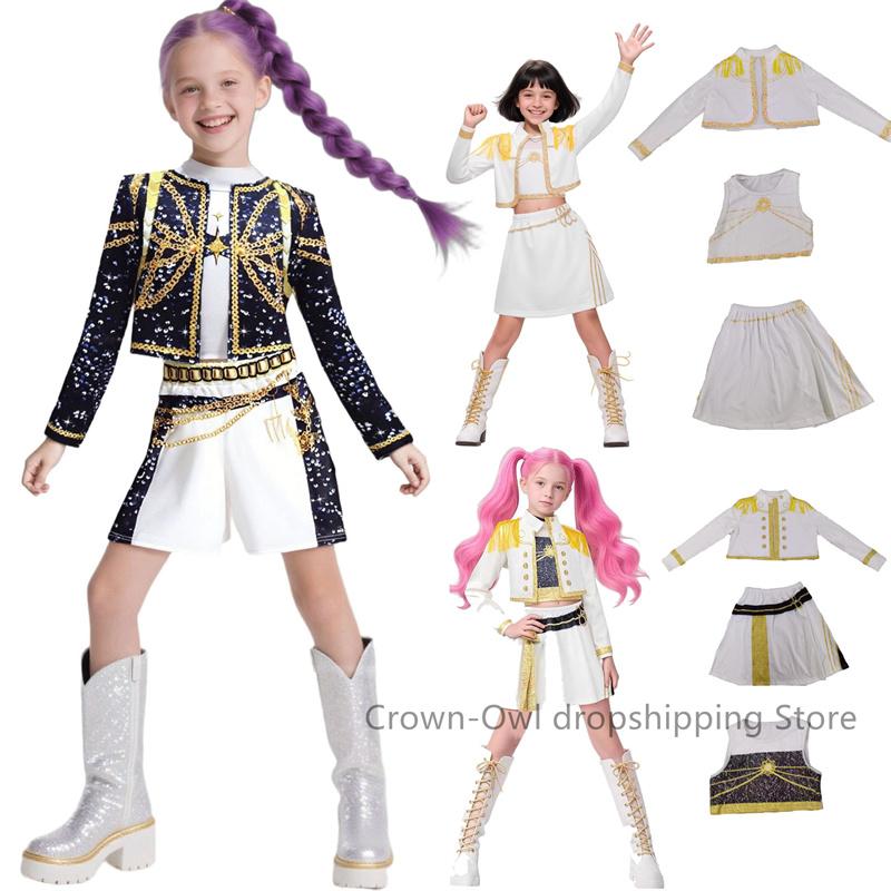 Çocuk Kızlar 3D Baskı Rumi Zoey Mira Cosplay Kostüm Takım Seti Kpop Şeytan Avcıları Üniforması Çocuk Cadılar Bayramı Partisi Rol Oyunu