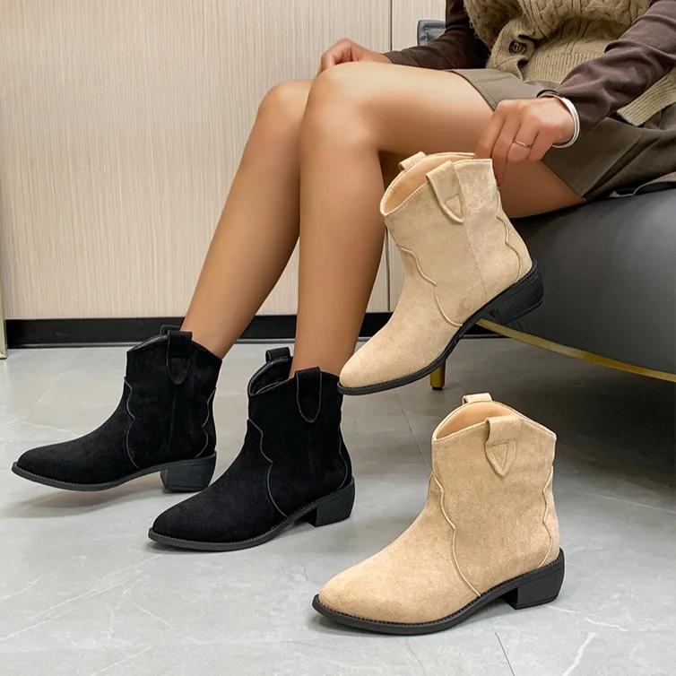 4.5cm High Heel Boots Soft Suede Solid Color Women Autumn Shoes Mid-Calf Breathtable Motorcycle Boots Plus Size 43