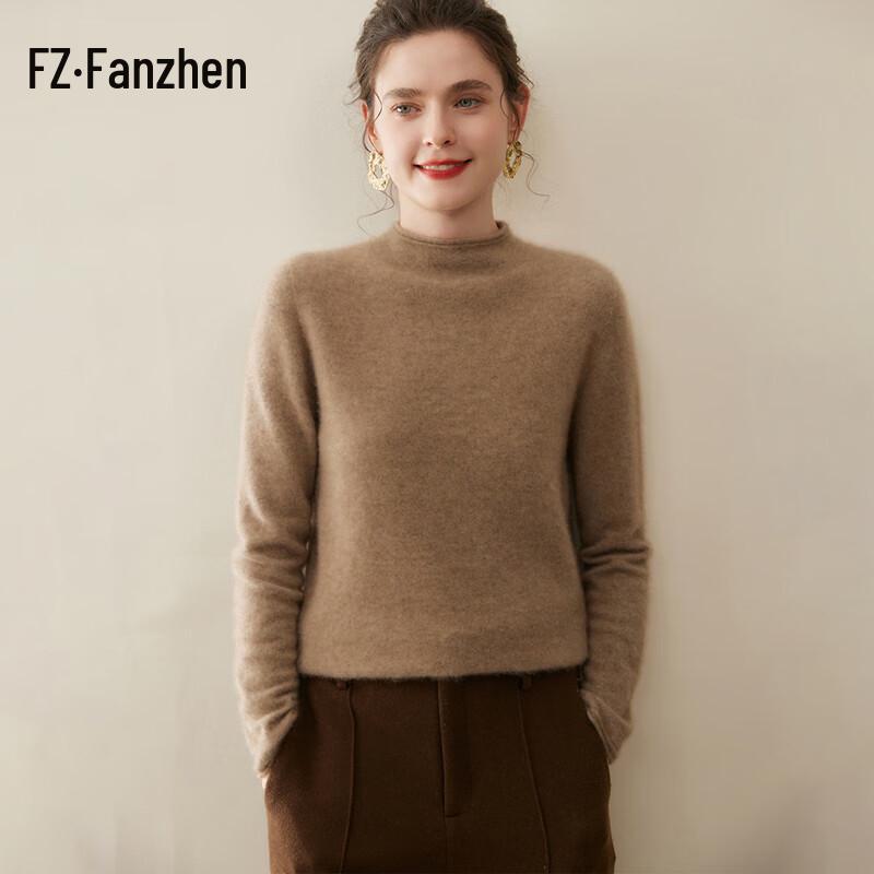 Fanzhen Women's 100% Cashmere Half-High Neck Sweater