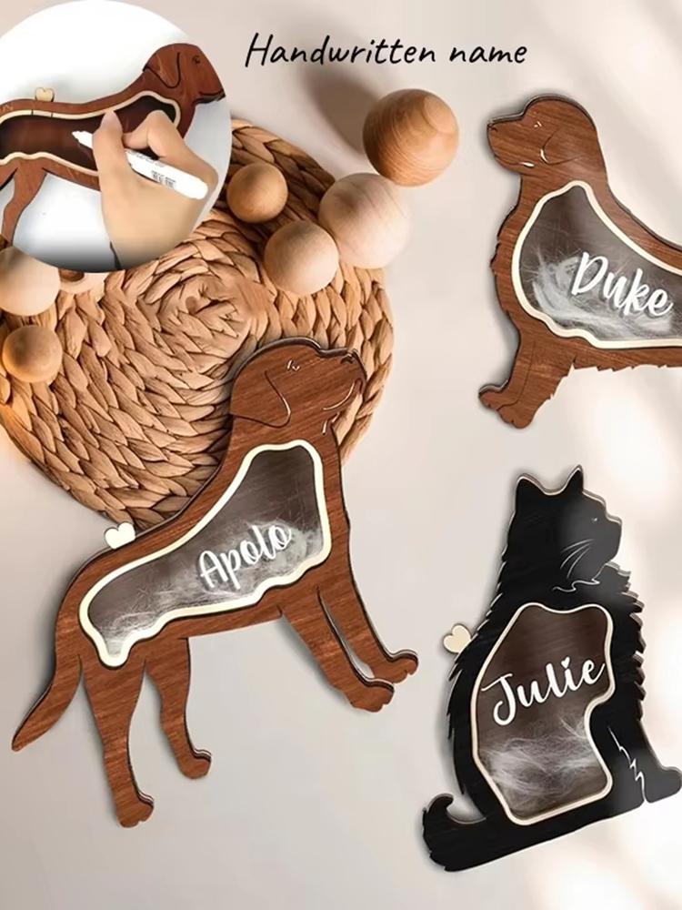 Solid Wood Handwritten Name Dog Hair Memorial Box My Pet's Fur Container Storage Box Pet Ashes Box Pet Memories Collecting Box