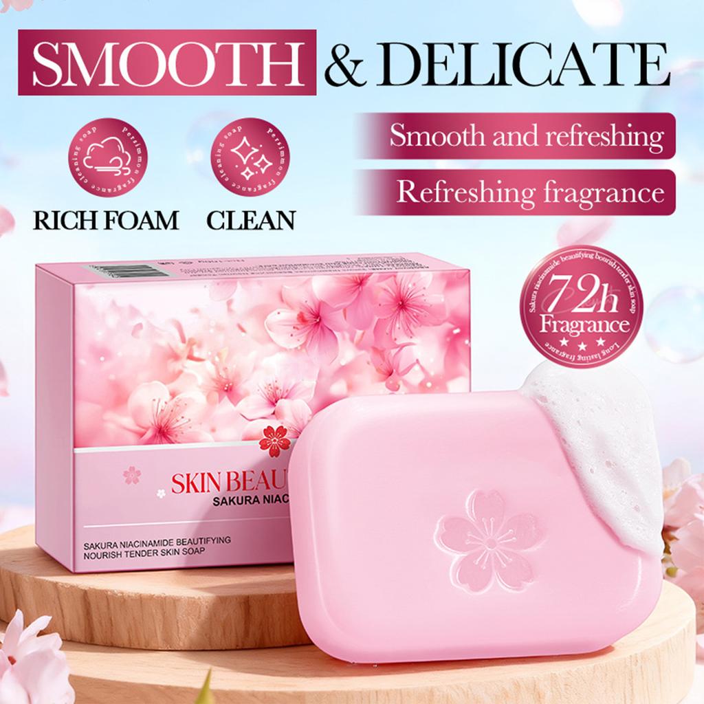 Sakura Blossom Soap Bar with Bamboo Foaming Net, Hydrating Face and Body Wash for Refreshed Clean Skin