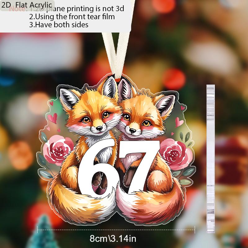 Valentine's Day Transparent Acrylic Pendant Two Foxes 6 7 Pattern Hanging Decor for Wall Door Car Gift for Friends Galentine's Day