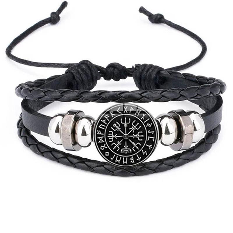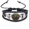 Vintage Viking Compass Trinity Bracelet Nordic Rune Odin Pattern Punk Leather Bracelet Men's Fashion Jewelry Amulet Gift