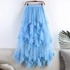 Women's Summer High-Waisted Asymmetric Midi A-Line Mesh Skirt Sweet Tiered Skirt Half-Skirt