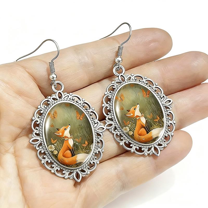 Thanksgiving Turkey Dangle Earrings For Women Cartoon Fox Oval Glass Dome Earrings Animal Jewelry Gifts