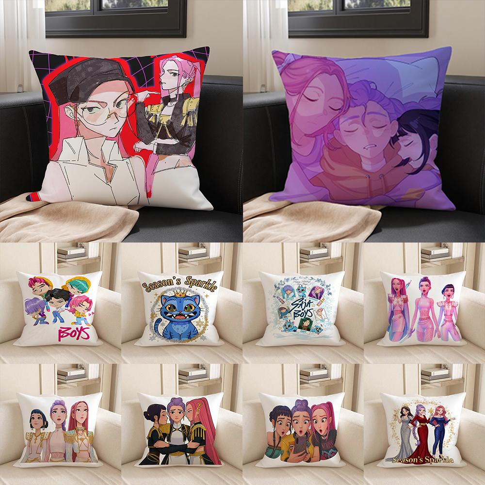 KPop Demon Hunters Anime show on the pillow: Pink and purple fantasy & Cute character pillowcase fashion home decoration