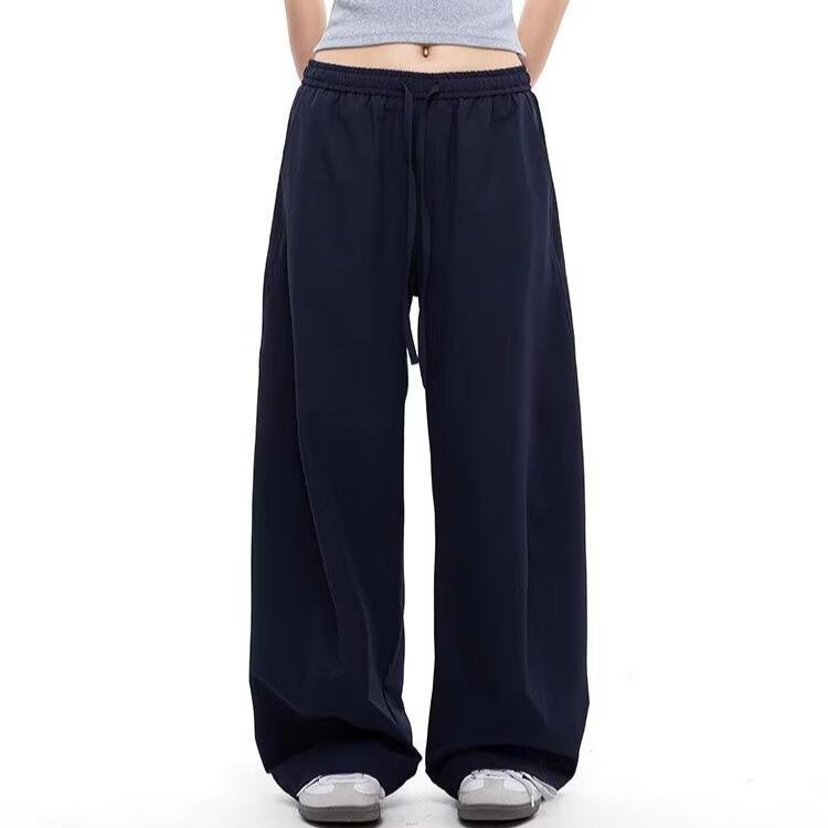 American navy blue scimitar casual pants for men and women, summer cool feeling quick-drying loose moving pants, hanging feeling wide-leg pants