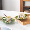 ZISIZ Ceramic Coffee Mug with Saucer and Spoon Gift Set