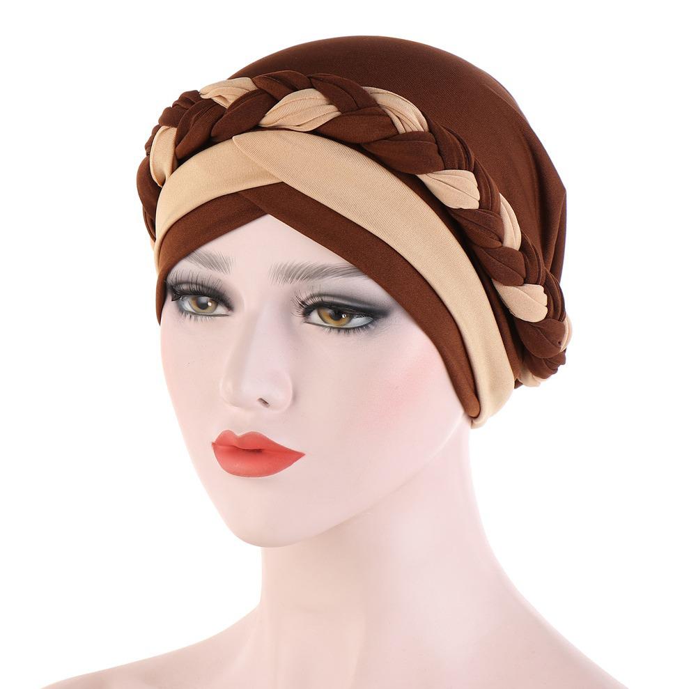 Two-Tone Patchwork Milk Silk Bandana Hat with Short Braid and Hidden Hair Wrap for Muslims