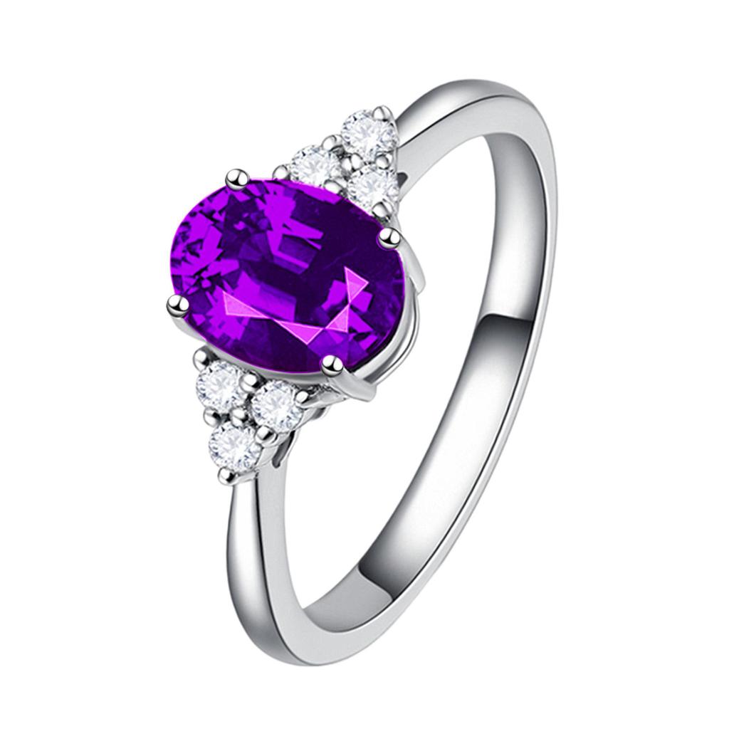 European and American Princess Egg-Shaped Ring: Purple Diamond, Emerald, Blue Stone Wedding Gem