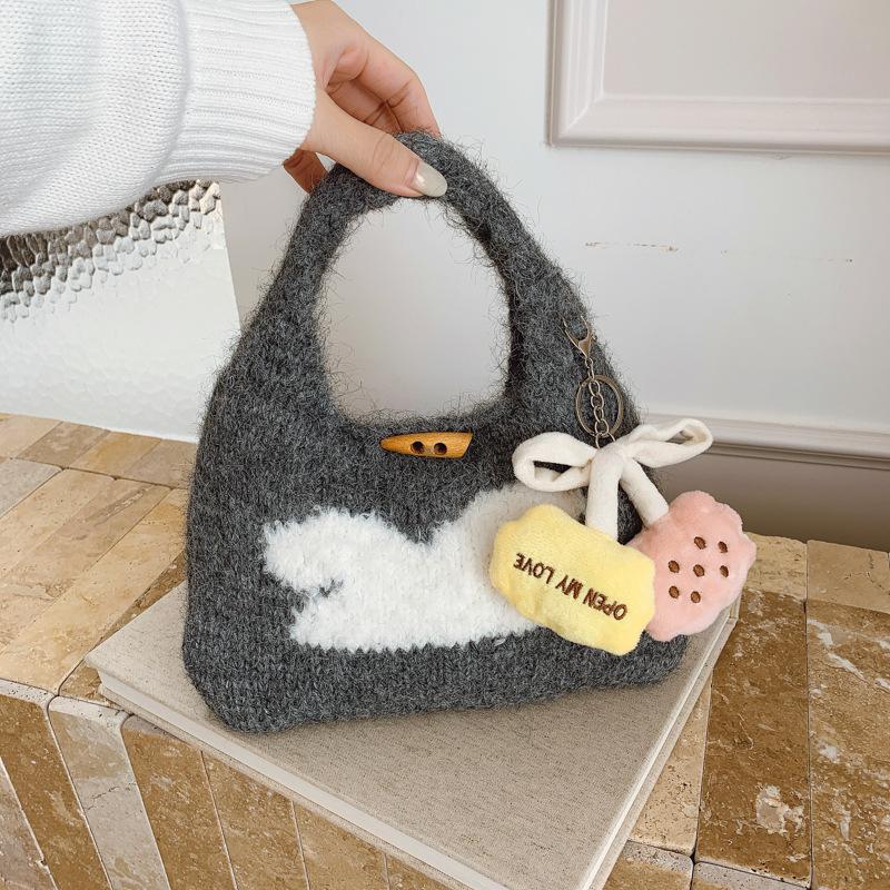 Knitted Handbag with A Cute and Niche Design Sense, Woven Bag, and Mobile Phone Bag