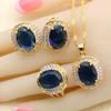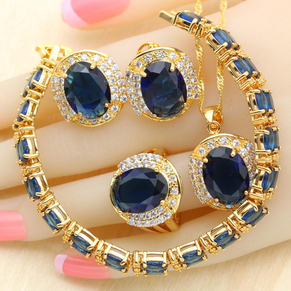 Dark Blue Stones Gold Color Bridal Jewelry Sets For Women Drop Earrings Necklace Pendant Bracelet Rings Free Gift Box Wpaitkys