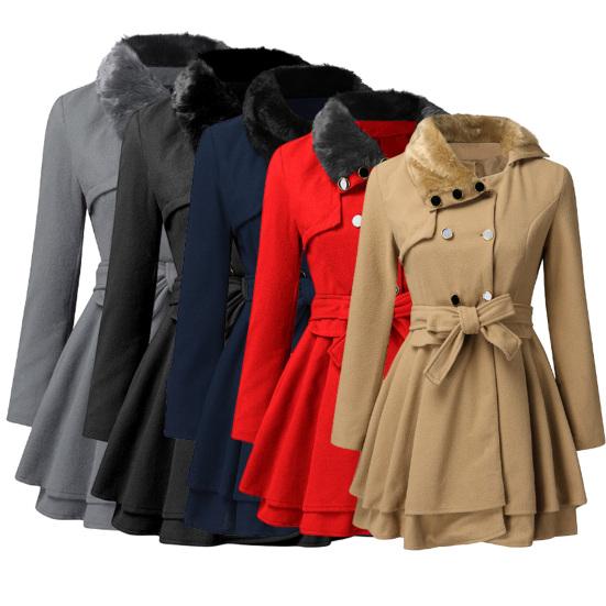 Having a belt that can be used to tie a bow or knot, this coat can make you look slimmer and more fashionable. And the faux fur collar gives you a very noble and classy look.