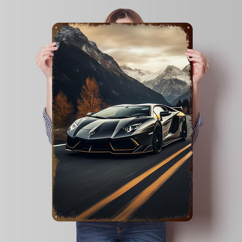 Sports Car Mountain View Tinplate Poster Customized Wall Art Vintage Metal Signs Retro Tin Plaque for Home Decor Living Room
