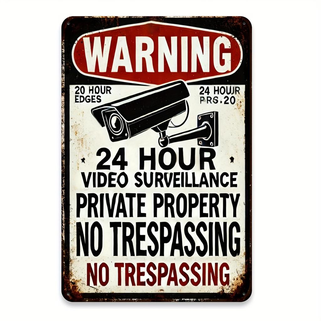 An Antique Warning Sign Iron Sheet, 12 "x8" - 24 Hour Video Surveillance, No Entry - Decorative Metal Wall Artwork for Home,