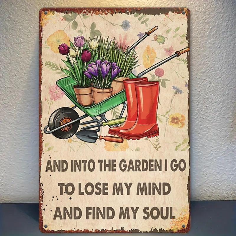 [ Metal Sign] Colorful -Style Metal Garden Sign - "Into the Garden I Go to Lose My Mind and Find My Soul" | Rustic Wall Art,