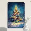 Vintage Rustic Tin Christmas Tree Metal Wall Decor 8x12 Inch - Indoor Outdoor Snowy Holiday Sign