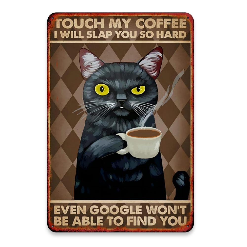 1pc WhimsyCat Black Cat with Coffee Metal Sign - Humorous Iron Wall Decor Plaque, 8x12 Inch Vintage Style Tin Art for Home, B