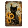 Charming Black Cat Reading Book Metal Tin Sign - Perfect for Home, Bar, Cafe, or Garage Decor, Indoor/Outdoor Wall Art, , P