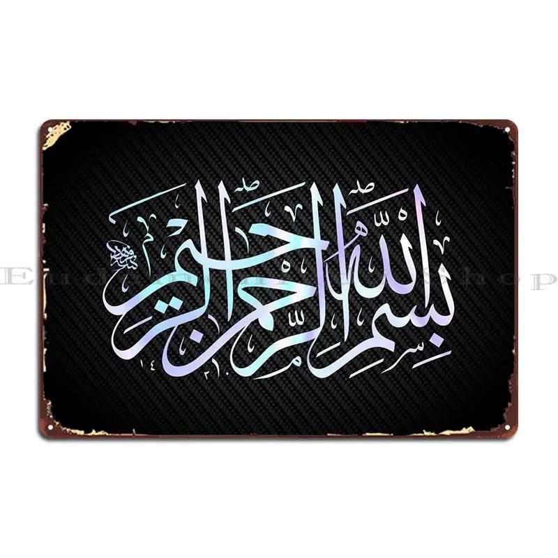 Elegant Basmala Calligraphy Metal Wall Plaque for Home Decor Living Room Party Venue Club Stylish Tin Sign Poster