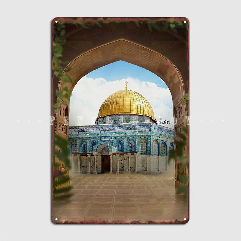 Aqsa Mosque Metal Plaque Poster Vintage Tin Sign for Wall Decor Home Cinema Garage Art