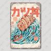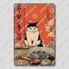 Vintage Japanese Cartoon Cat Tin Sign Retro Ramen Sushi Takoyaki Metal Wall Art for Kitchen Bar Pub Restaurant Decor Unique Ho