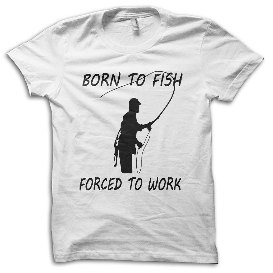 Born to Fish Forced to Work Funny Fishing Angling Joke T-Shirt M5711