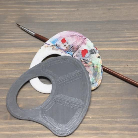 Konfor için Ergonomik Sap: Ortasında yuvarlak bir parmak deliği ile tasarlanan bu palet, uzun resim seansları için rahat bir tutuş sunar.. Ergonomik sapı, uzun süreli resim çalışmaları veya dış mekan çizimleri için ideal olan stabilite ve kullanım kolaylığı sağlar.