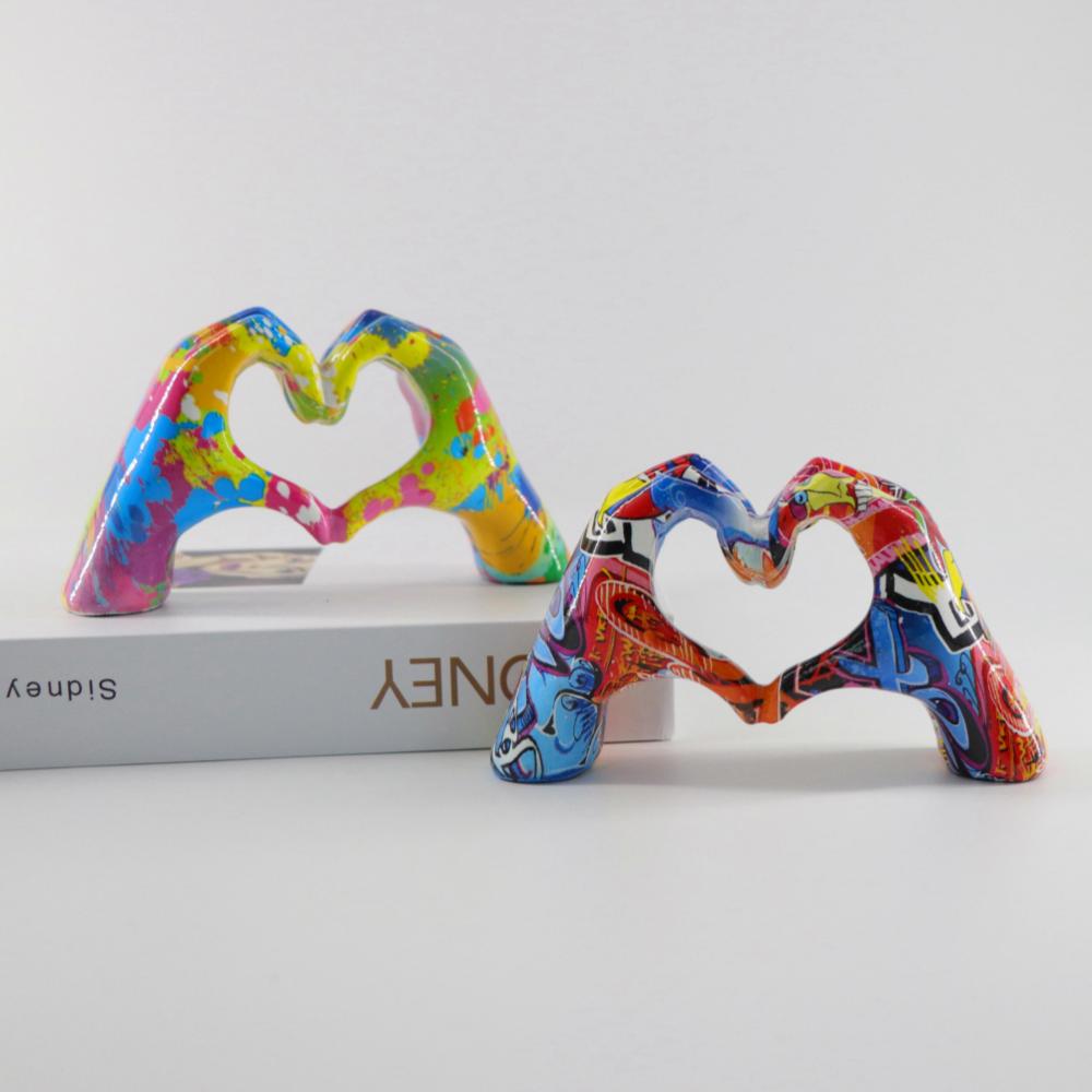 Kalp İşareti Boyalı Heykelcik Reçine Renkli Yağlı Boya Graffiti Kalp Şeklinde El Heykeli Ev Merkez Dekor Modern Masaüstü Süsleri