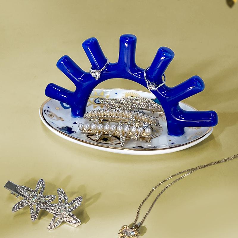 Multifunctional Ring Display Rack Earring Necklace Jewelry Storage Organizer Evil Eyes Ceramics Storage Tray Makeup Table Decor