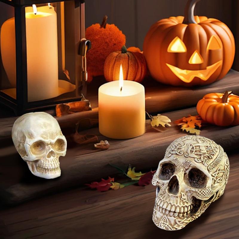 Cadılar Bayramı Dekorasyonu Kurukafa Başları Figür Retro Gotik Korku Kurukafa Heykelleri Reçine El Sanatları Bahçe Heykelleri Ev Masaüstü Süsü