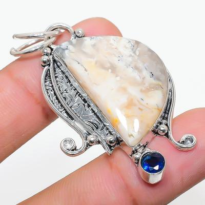 Natural Dendrite Opal, Topaz 925 Sterling Silver Jewelry Pendant 2.29" AP-13327