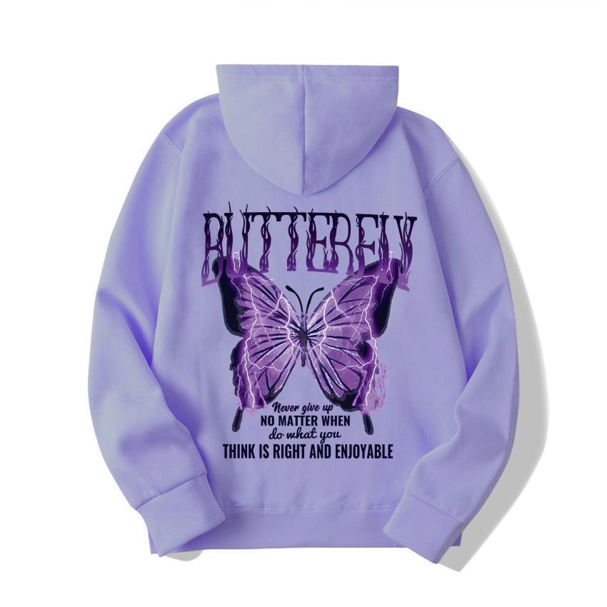 2025 European and American new letter fashion multi-color butterfly casual hooded fleece sweater