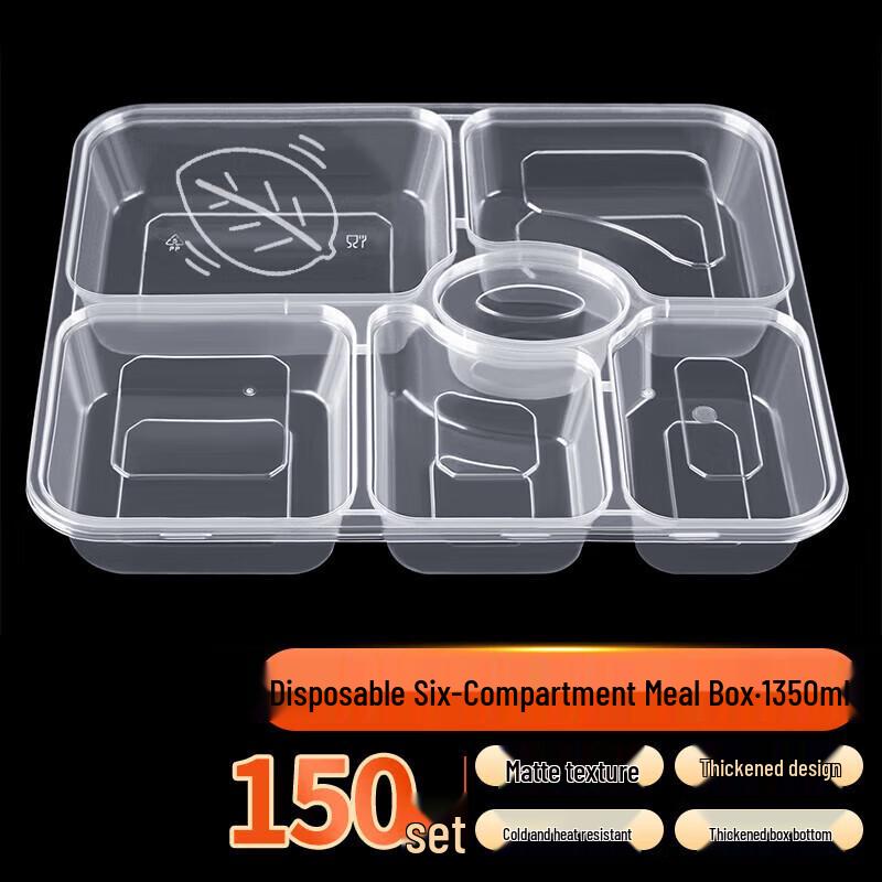 Disposable 6-Compartment Rectangular Meal Prep Containers with Lids, 150 Sets