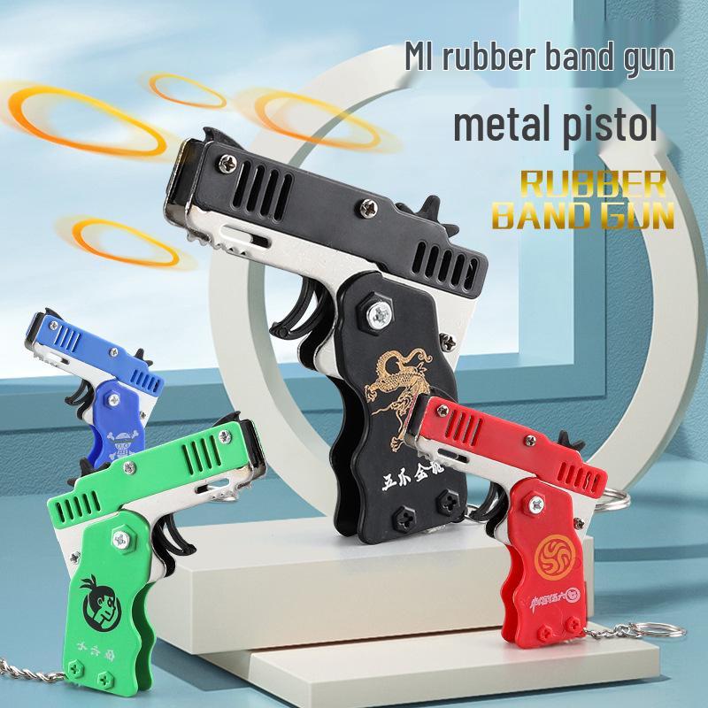 Mini Folding Metal Rubber Band Gun Keychain for Kids