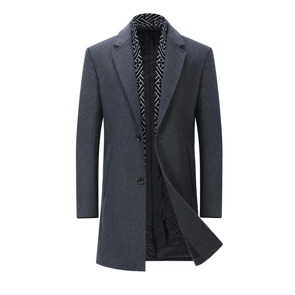 Introducing a sophisticated addition to your autumn and winter wardrobe, this men's trench coat combines a loose fit with insulated outerwear thickness for unparalleled comfort and warmth. Crafted from high-quality wool, it features a solid pattern that effortlessly complements both business and casual attire. Designed for the modern gentleman, this mid-length coat embodies timeless elegance and practicality, making it an essential piece for the cooler seasons.