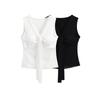 This stylish tank top features a solid design with a trendy backless cut and sleeveless silhouette, adding a touch of allure to your outfit. The back closure with a bow tie detail adds a charming and feminine touch to the overall look.