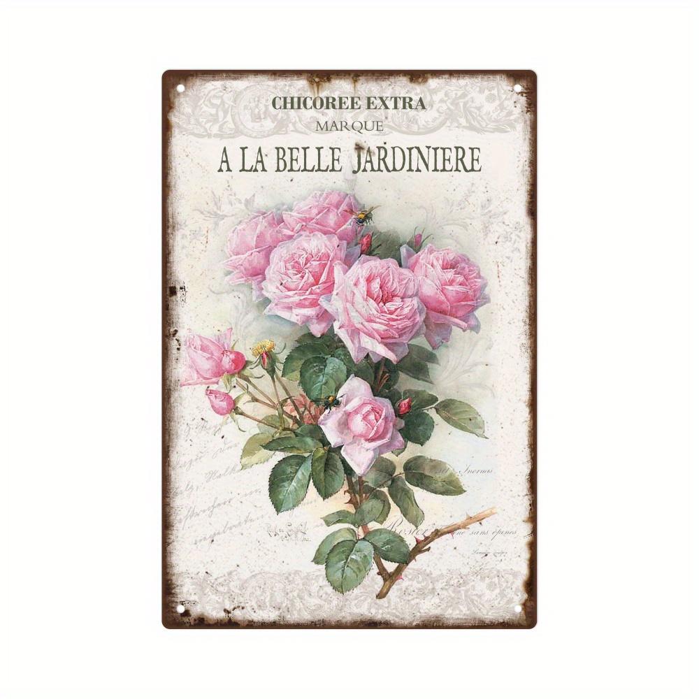 Vintage Rose Metal Tin Sign, Retro Wall Art for Home & Garden Decor, Rustic Pink Roses Design with Green Leaves and Butterflies