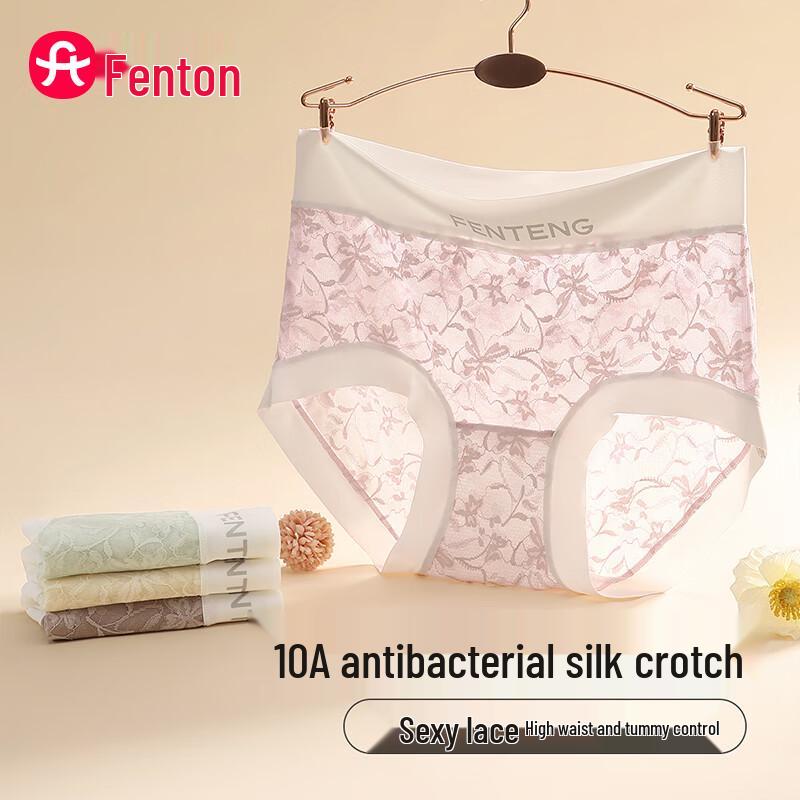Fenteng Women's High-Waisted Lace Antibacterial Silk Crotch Briefs 4-Pack