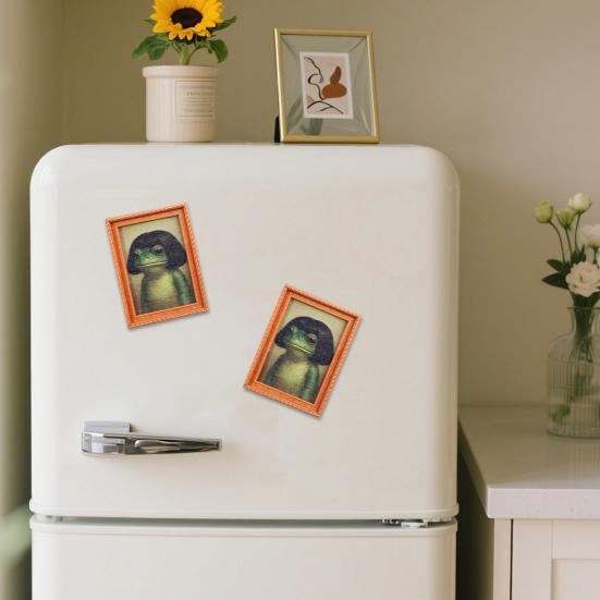 1/2/3/4/5Pcs Frog Fridge Magnet Kitchen Decor Vintage Mini Green Frog Refrigerator Magnet with Wooden Frame Home Office Decoration
