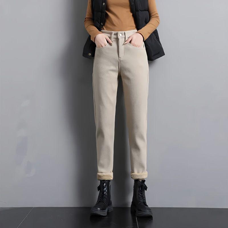 Women's Fleece-Lined Jeans High-Waist Slim Plus Velvet Harem Jeans Autumn and Winter Stretch Skinny Jeans