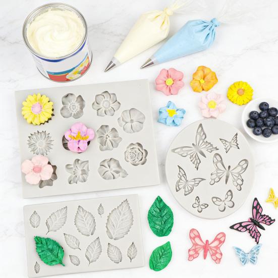 3Pcs Flower Leaf Butterfly Silicone Mold for Cake Decorating DIY Chocolate Candy Fondant Craft Baking Mold Flexible Easy Release Multi-Purpose Jelly