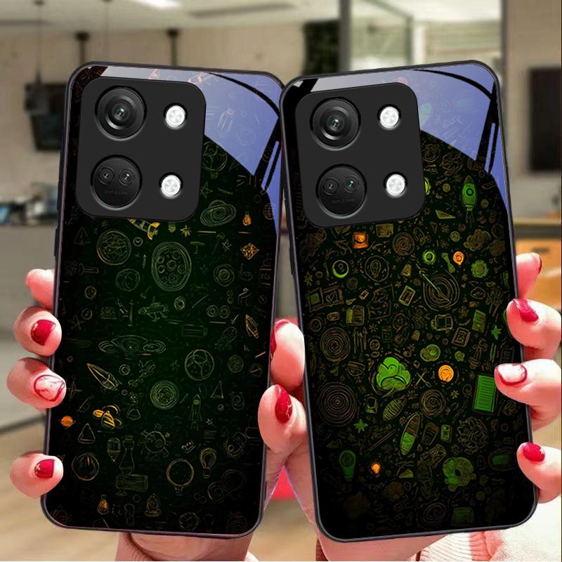 Dream Space Siyah OnePlus Nord 3 5 6T 7 Pro 8 12 10T Reno8 Lite 5G 10R Nord N30 İçin Siyah Sert Kabuklu Temperli Cam Telefon Kılıfı