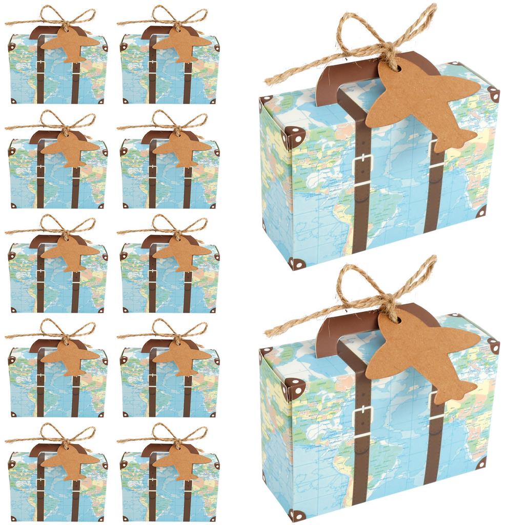 50/100Pc Vintage Party Favor Candy Box with Aircraft Tags Reusable Mini Suitcase Favor Box for Travel Themed Party Bridal Shower