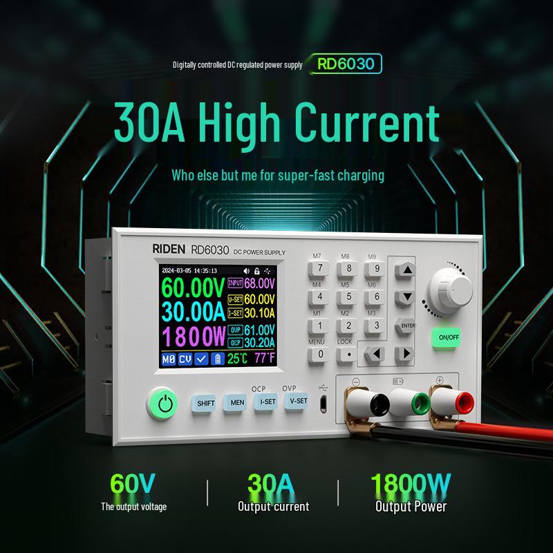 Ruiteng RD6030 Adjustable DC Power Supply, 5V/12V/36V/48V/60V Digital Display, 30A Battery Charger
